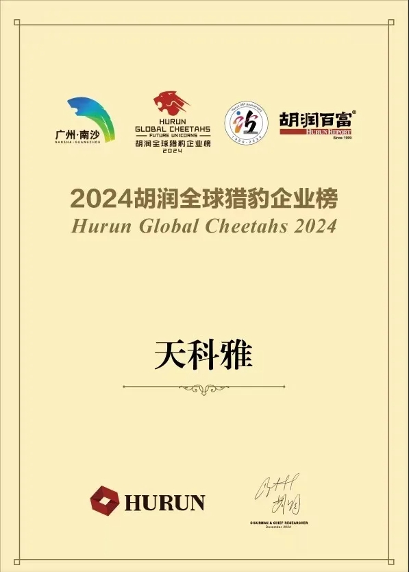 天科雅榮登《2024胡潤全球獵豹企業(yè)榜》
